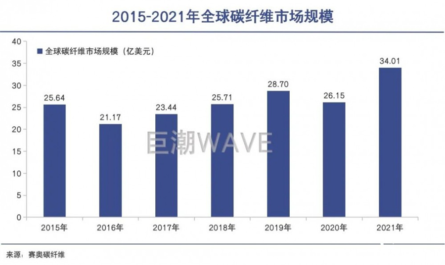 隨著碳纖維制造工藝日益成熟,制造成本不斷下降,此時來自下游新能源產(chǎn)業(yè)的應用引燃了需求,碳纖維的規(guī)模化應用場景得以實現(xiàn)突破。