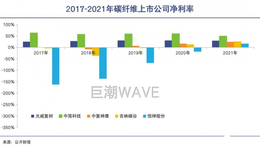 此前多年,由于國內碳纖維產(chǎn)線偏低端、工藝不完善,造成生產(chǎn)成本高企,加之下游競爭激烈,大部分碳纖維企業(yè)處于虧損狀態(tài),生存狀態(tài)較為艱難。